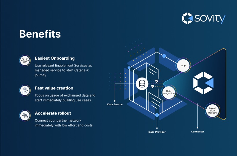 Connect to Catena-X with sovity’s easy-to-use enablement services and exchange data with your partners.